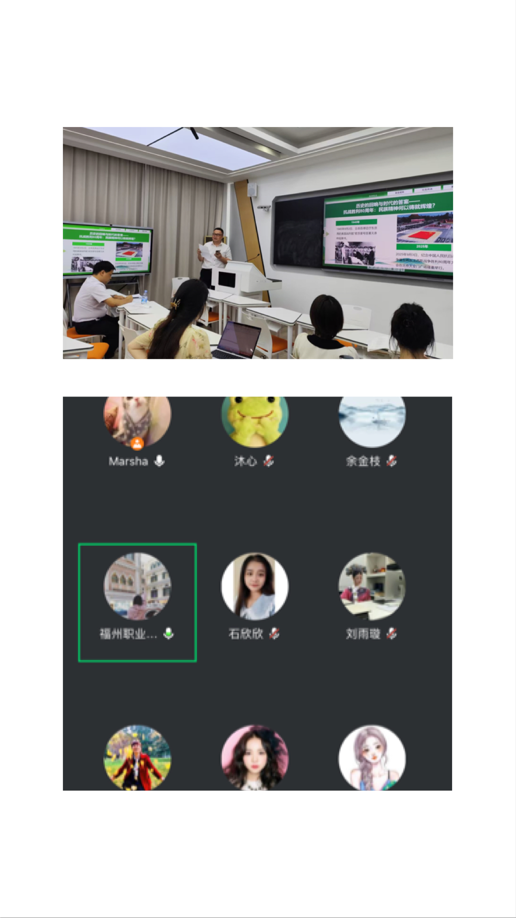 为深入贯彻习近平总书记关于思政课建设的重要论述,深化渭榕两地在思政教育领域的务实协作,切实提升教师队伍的教学能力和专业水平,9月24日下午,我校马院与福州职业技术学院马院联合开展线上思政“金课”交流分享会。来自两所院校的40余名思政课教师代表参加。会议由我校习近平新时代中国特色社会主义思想研究中心副主任马晓莎主持。